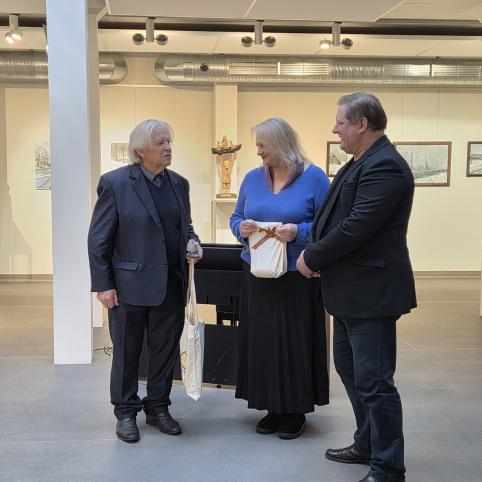 Kelmės kultūros centro direktorė Laima Lapinskienė dėkojo autoriui už kuriamą ir skleidžiamą šviesą bei linkėjo stiprios sveikatos, ilgiausių metų, įkvėpimo kurti.