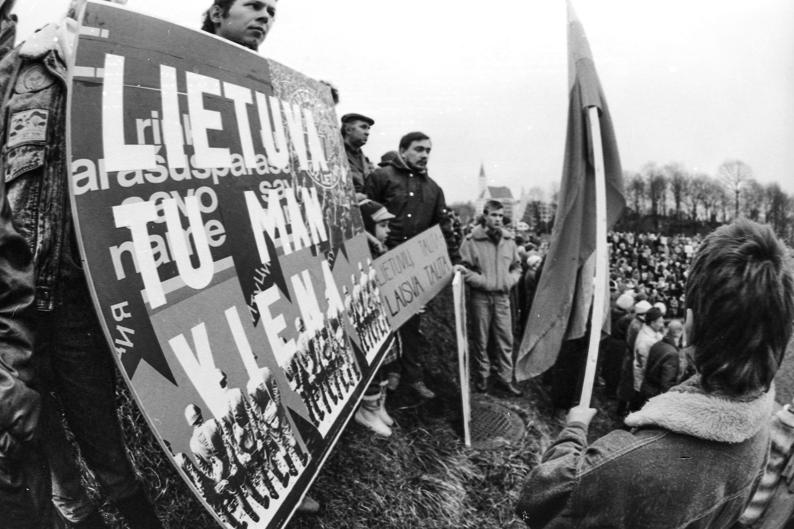Mitingas Šiauliuose, Saulės Laikrodžio aikštėje, 1991 metų sausio 12 dieną. Fotografas Antanas Dilys.