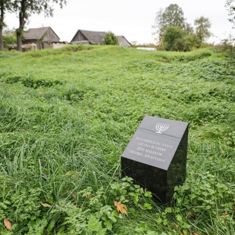 „Per 2018 metų žvalgymus laukuose radome daug su žiemgaliais susijusių radinių. 2022 metais A. Adomaitis sukūrė akmenų kompoziciją, akmenyje iškalė atrastą ietigalį, segę. Tikėtina, kad prie sodybos yra ir žiemgalių kapų. Šalia – ir pirmasis kapinynas, dabar – saugoma teritorija“, – parodo rankos mostu į laukus.