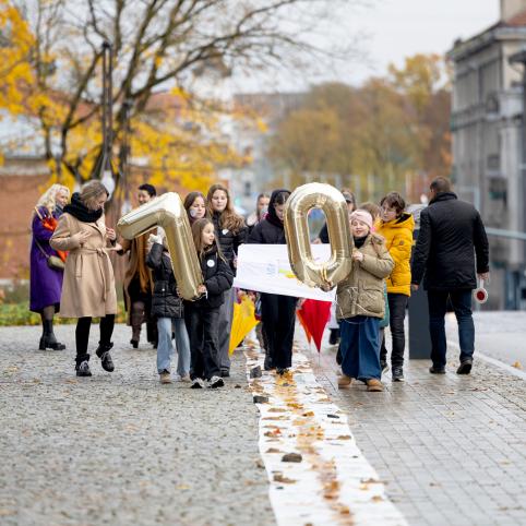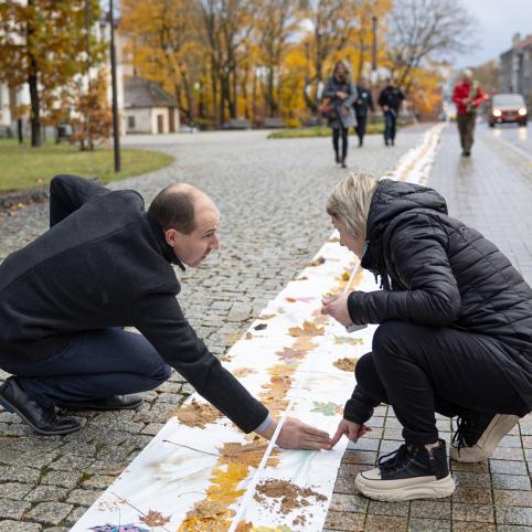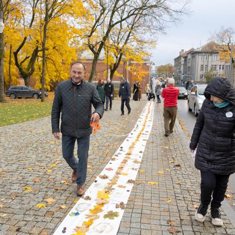 Spalio 29 dieną Šiaulių menų mokykla pradėjo švęsti 70-mečio jubiliejų – fiksavo išskirtinį pasiekimą „Ilgiausias medžių lapais dekoruotas takas“.