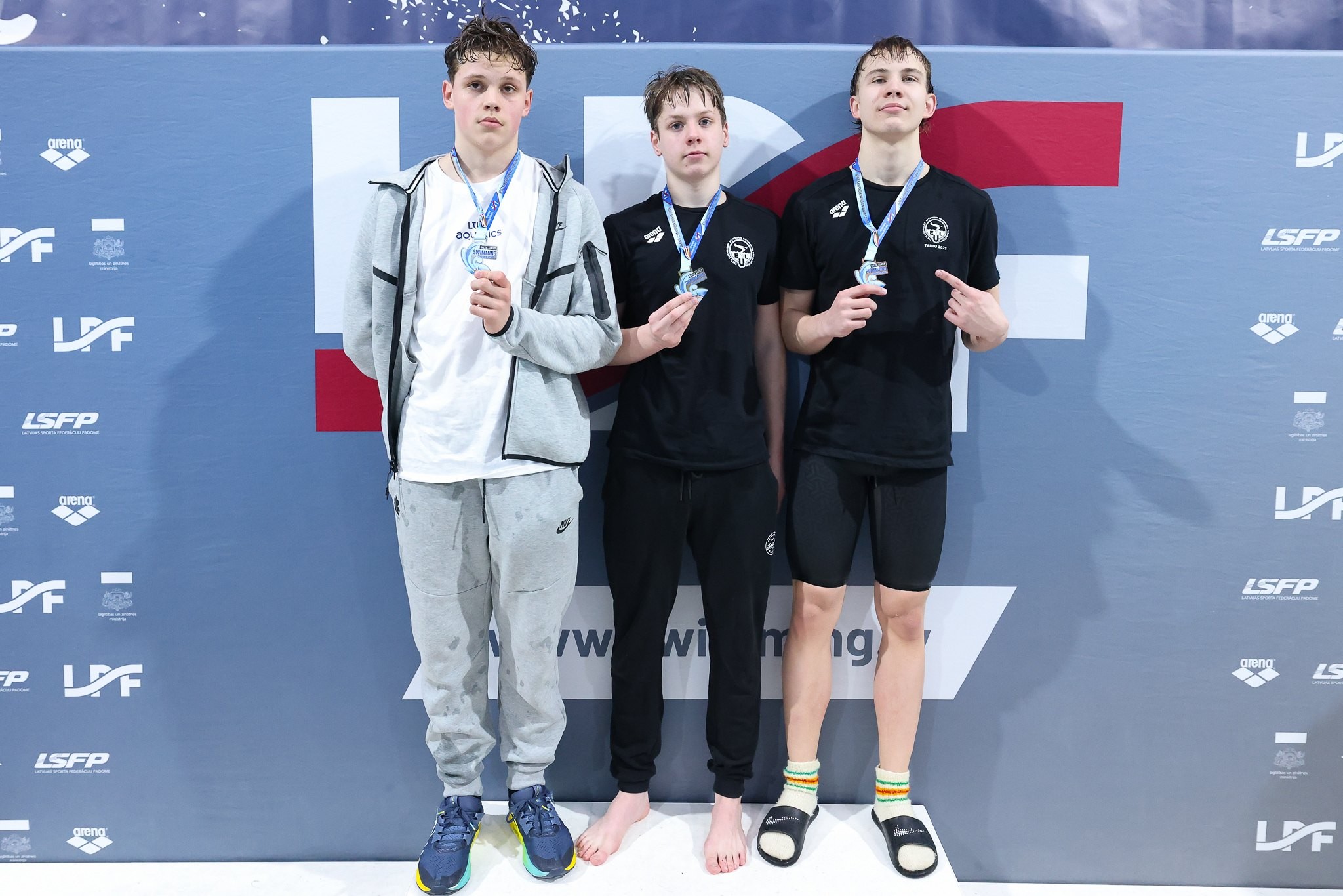 Vaikinų 4x100 m kompleksiniu būdu estafetėje tarp jaunių aukso medalį pelnė Lietuvos komanda: M. Tručinskas, M. Šveikauskas, V. Vaitulionis ir S. Pečiulis. Lietuviai pademonstravo 3 min. 54,63 sek. rezultatą.