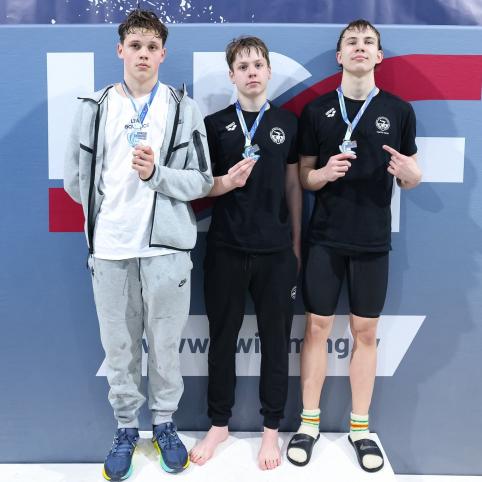 Estafetėje 4x100 m kompleksiniu būdu tarp vaikinų triumfavo Lietuvos komanda - Kajus Stankevičius, Andrius Šidlauskas, Kristupas Trepočka ir Arminas Murėnas (3 min. 40,94 sek.).
