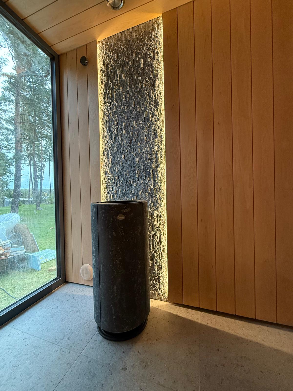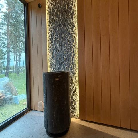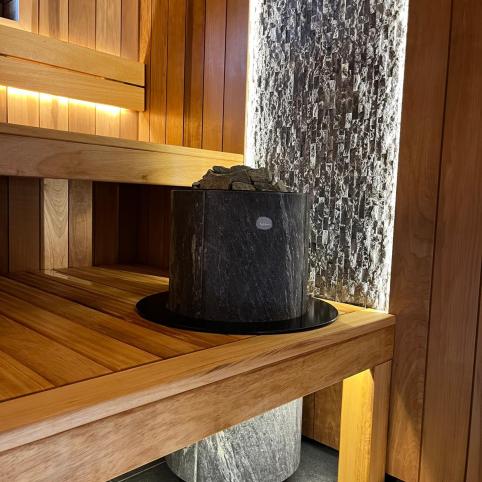 Ekspertas rekomenduoja rinktis krosnelę su akmens apdaila, nes didesnė akmens masė ir mažiau atviro metalo suteikia švelnesnį garą.