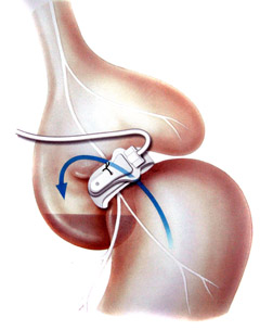 „Operacijos metu skrandis perspaudžiamas žiedu, kaip smėlio laikrodis. Padaromas mažas rezervuaras. Skrandžio sotumo receptoriai yra viršuje, todėl valgyti reikės labai mažai. Žiedas yra labai patogiai sukonstruotas. Jeigu pacientas nori, kad žiedas būtų nuimtas, nesudėtingos laparaskopinės operacijos metu jis nukerpamas ir ištraukiamas“, — pasakojo chirurgai.