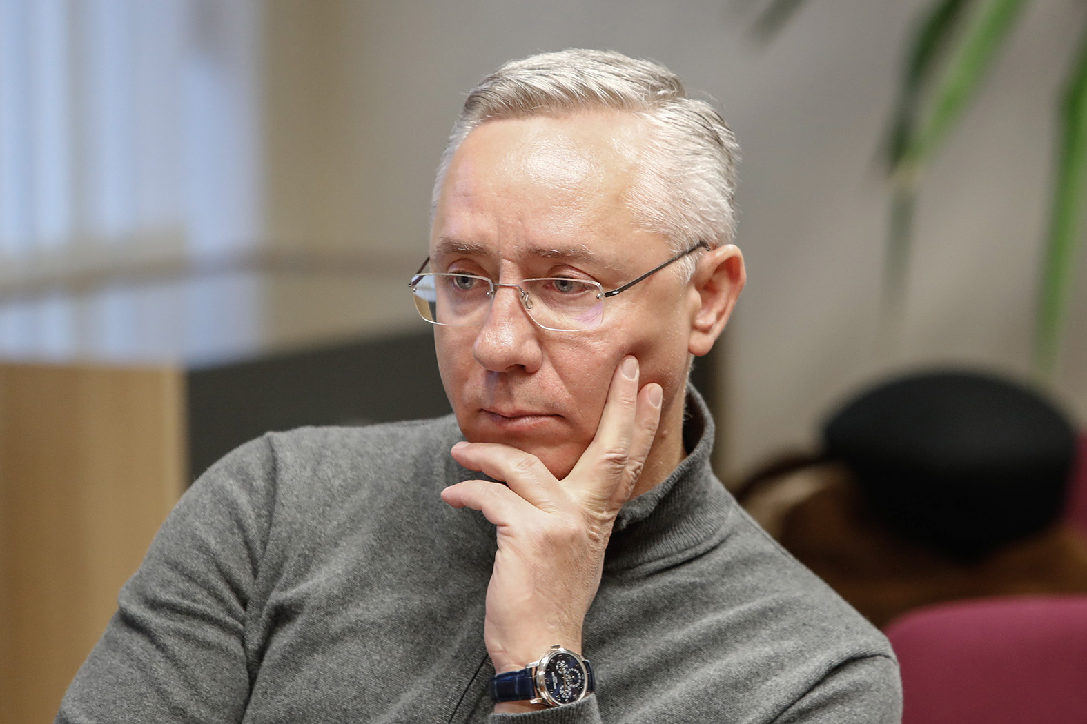 Teismo posėdžio metu A. Visockas buvo akivaizdžiai „išėjęs iš veido“, iš rankų nepaleido telefono.