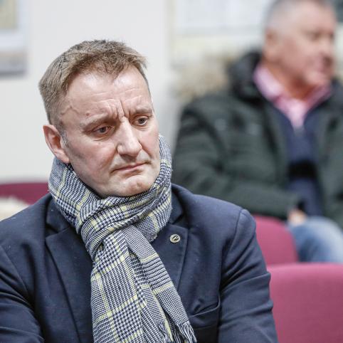 Teismo salės pirmoje eilėje, greta kaltinamųjų – Vilniaus UAB „Infes technologijos“ buvusio akcininko Danielio Krinickio ir UAB „Viešųjų pirkimų agentūros eTenders“ (iki 2024 metų sausio „Etenders Baltija“) direktoriaus, minėto viešojo pirkimo konsultanto Ryčio Maliukevičiaus – prisėdęs A. Visockas matyt pasijuto nejaukiai ir persėdo antrąją eilę.