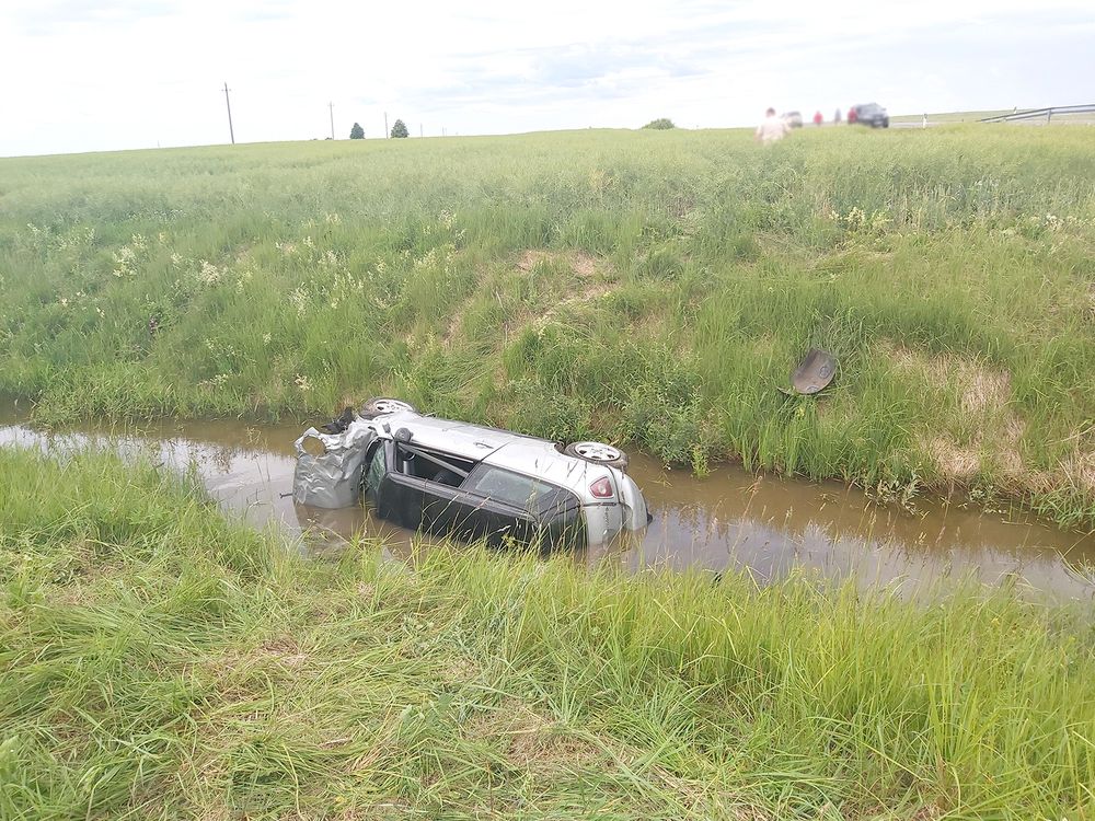 Vis tik nelaimės išvengti šiam automobiliui nepavyko – jis nuvažiavo nuo kelio, kelis kartus vertėsi ir šonu paniro į vandens pilną griovį.