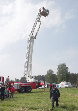 AUKŠTYN: Pakilti 42 metrų aukščio ugniagesių bokšteliu norėjo daugelis šventės dalyvių.